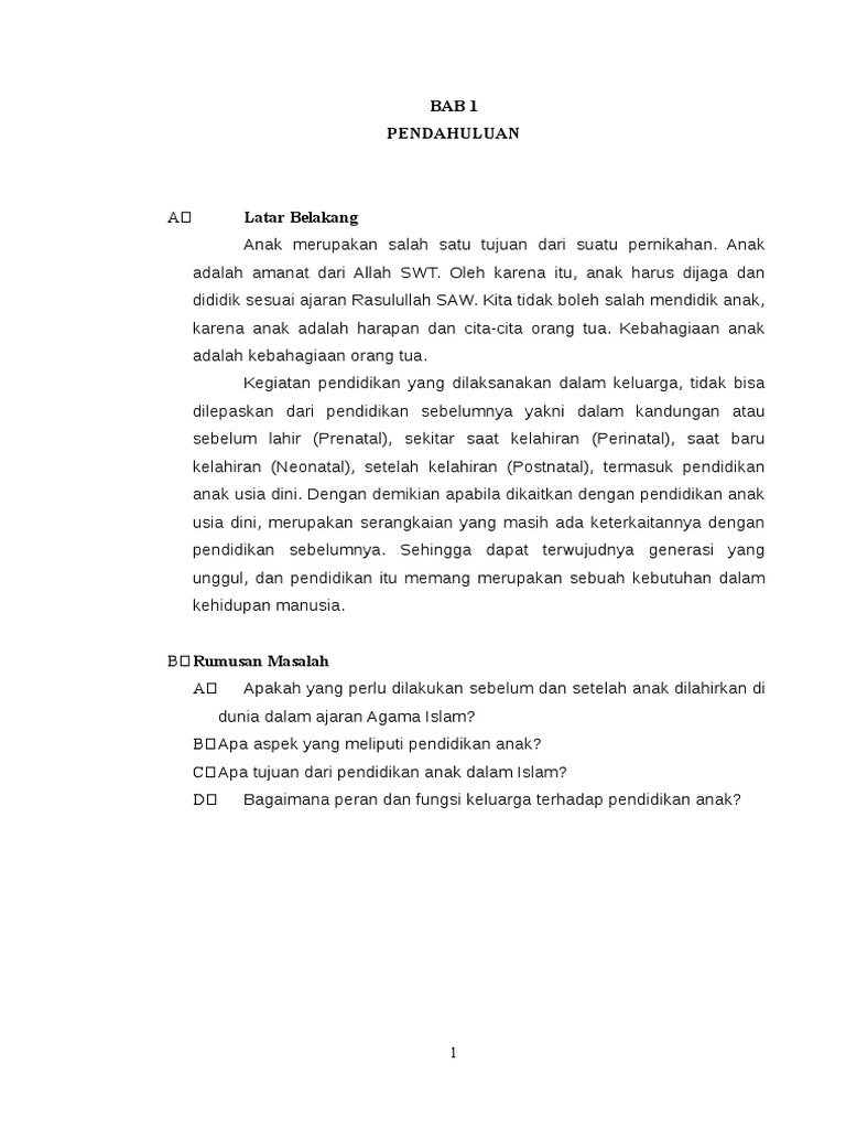 Pdf Urgensi Pendidikan Hadis Dalam Pembentukan Karakter Anak Usia Dini from i1.rgstatic.net Hadits tentang mendidik anak pertama terkait dengan kewajiban orangtua untuk mendidik anak. Diantara perintah agama yang disebutkan dalam hadits ada tiga perintah melaksanak a n sholat, perintah memberikan hukuman bagi pelangarannya dan perintah mendidik pendidikan seks. 20 tahun 2003 tentang sistem pendidikan nasional berkaitan dengan dengan pendidikan anak usia dini tertulis pada pasal 28 tayat 1 yang berbunyi pendidikan anak usia dini diselenggarakan bagi anak sejak lahir sampai dengan umur 6 tahun dan bukan merupakan prasyarat untuk mengikuti pendidikan dasar. Tentunya, orang tua sangat mengharapkan agar anaknya sukses dunia dan akhirat. Pada bidang aqidah, meskipun anak usia dini belum layak untuk diajak berpikir tentang hakikat tuhan, malaikat, nabi (rasul), kitab suci, hari akhir, dan qadha dan qadar, tetapi anak usia dini sudah dapat diberi pendidikan awal tentang aqidah (rukun iman). Daftar hadist tentang pendidikan anak usia dini. Yaitu kumpulan hadits mendidik anak usia dini. Sebuah proses pendidikan membutuhkan sebuah pemikiran dan sebuah cara yakni berfilsafat dalam hal memberikan yang terbaik bagi pendidikan demi kemajuan pendidikan bangsa dan demi tercapainya tujuan…